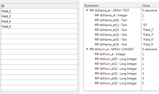 | ARRAY TEXT(tblName_at;0) ARRAY LONGINT(tblNum_al;0) GET FIELD TITLES([Table_1];tblName_at;tblNum_al) |