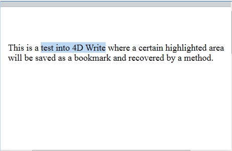 | C_TEXT($wpText) $wpText:=WP_GET_BOOMARK_CONTENTS (->WriteProArea;"myBookmark") |