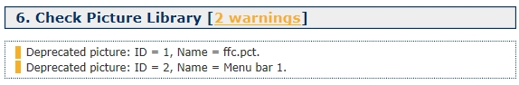 Also other parts of the verification process will check if items are using any depreciated image formats and warn of these too: