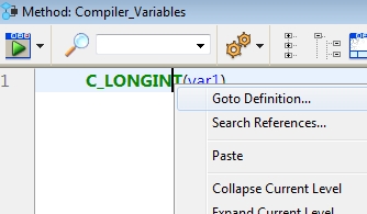 - Variables: Will first try to find where it is first defined within a method and jump to that line, if it is not defined in the method it will try to find it in the compiler variables and open the method in the method editor and jump to that line.