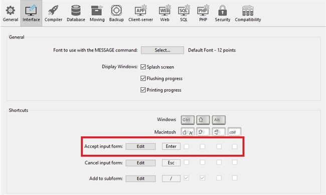 1. Go to Settings > Interface > Shortcuts > Accept input form as shown in the image below