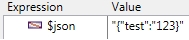 | C_TEXT($json) $json:="{\"test\":\"123\"}" $status:=CHECK_MALFORMED_JSON ($json) // $status = False |