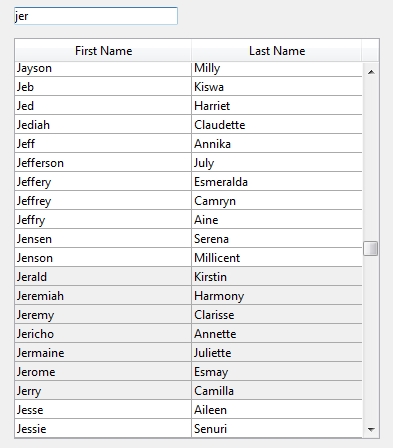 By typing "jer", it will find "Jerald" as it is looking the "FirstName" field: