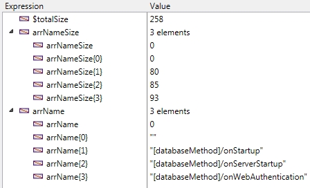 | $totalSize:=GET_METHOD_SIZE (1;->arrName;->arrNameSize) |