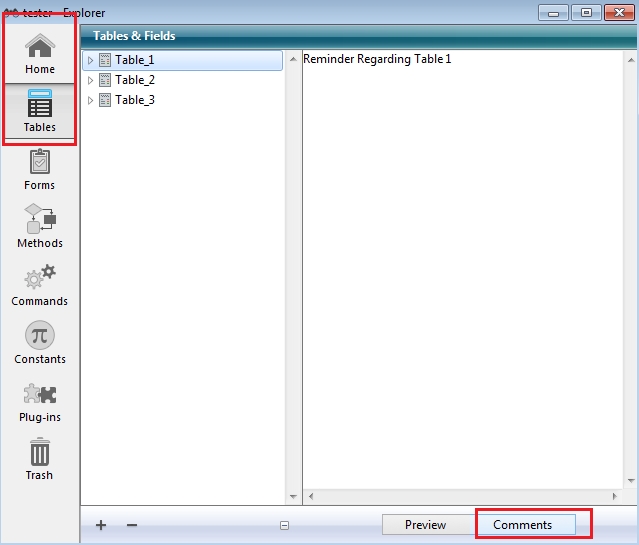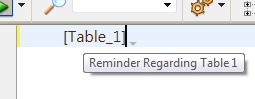It is possible to add help tips to table names in the method editor too. To do so open up the exporer and navigate to a table in the Home section or the Tables section. Then select a table and change the right pane from preview view to comments view. Any comments added will become a help tip when hovering over the table name.