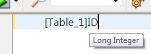 However if a field name is added to the table name the entire item will become a single item representing the field and will only generate the field's type and no longer display the table's help tip: