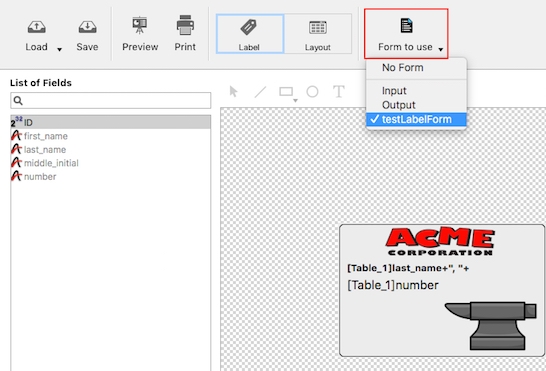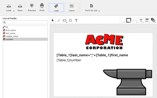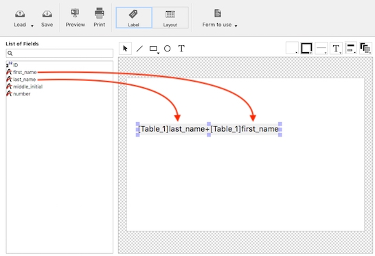 Start by dragging and dropping fields into your label from the List of Fields: