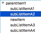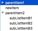2) If the selected element is a parent element with a collapsed sublist, the inserted item will be a parent item.