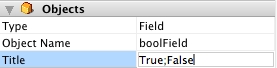 Change the title of the field in the properties window to something like "True;False":