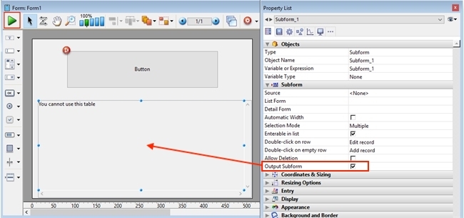 In order to test this, the form with the output subform needs to be opened as a process. To open the form in a process, use a simple method to launch the form like this: