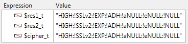 | C_TEXT($cipher_t) C_TEXT($res1_t) C_TEXT($res2_t) $cipher_t:="HIGH:!SSLv2:!EXP:!ADH:!aNULL:!eNULL:!NULL" WEB START SERVER SET DATABASE PARAMETER(SSL cipher list;$cipher_t) Get database parameter(SSL cipher list;$res1_t) WEB STOP SERVER WEB START SERVER Get database parameter(SSL cipher list;$res2_t) TRACE |