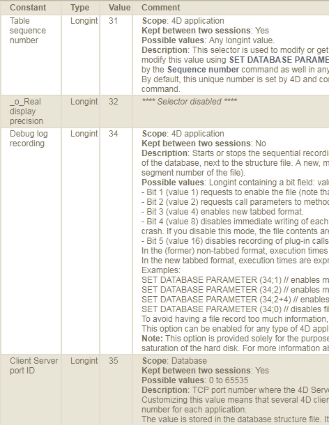 Here is a utility method to export the DATABASE PARAMETERS in a 4D database which can be useful to debug issues on a 4D database: