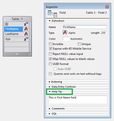 | C_TEXT($tip) $tip:=EXTRACT_FIELD_TIP (->[People]LastName) // "This is Field Name Field" |