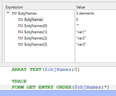 There is a subtlty that needs to be understood about this command, which surrounds what objects are returned by the FORM GET ENTRY ORDER command.