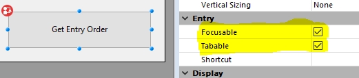 So the button does not show up because, though it is focusable, it is not tabable!