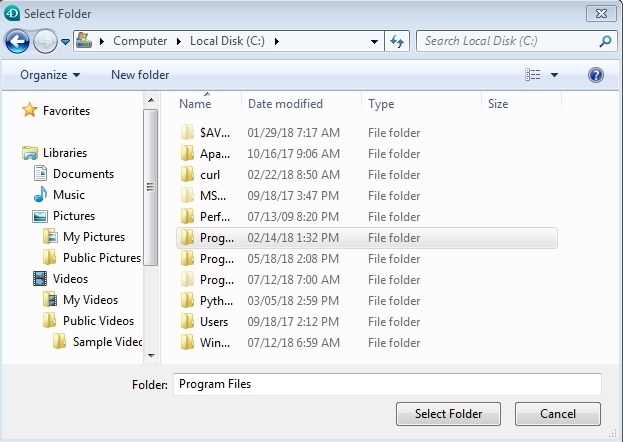 4D v17 has improved the dialog box opened when the Select Folder command is called.