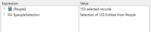Here are the results from our current selection [People] and entity selection $peopleSelection. Next example is how to create an entity selection from an existing current selection.