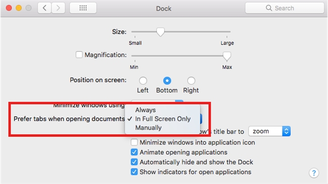 If According to System Preferences is set, 4D will base its setting on macOS System Preferences > Dock