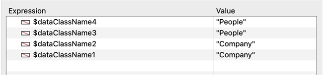 | C_OBJECT($entSelection1;$ent1) C_OBJECT($entSelection2;$ent2) C_TEXT($dataClassName1;$dataClassName2;$dataClassName3;$dataClassName4) $entSelection1:=ds.Company.all() $ent1:=$entSelection1.first() $entSelection2:=ds.People.all() $ent2:=$entSelection2.first() // pass Company entity selection as argument $dataClassName1:=UTIL_Get_Dataclass_From_Entity ($entSelection1) // pass Company entity as argument $dataClassName2:=UTIL_Get_Dataclass_From_Entity ($ent1) // pass People entity selection as argument $dataClassName3:=UTIL_Get_Dataclass_From_Entity ($entSelection2) // pass People entity as argument $dataClassName4:=UTIL_Get_Dataclass_From_Entity ($ent2) |