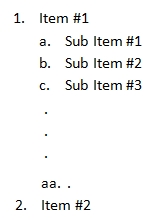 Alphbetic numbering can also be useful for things like extending content of an item that contains multiple sub items in lists and table of contents such as the following: