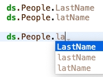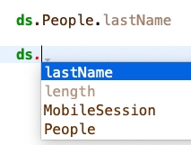 4D will remember both table name People and field name lastName in autocomplete list after typing dot after ds: