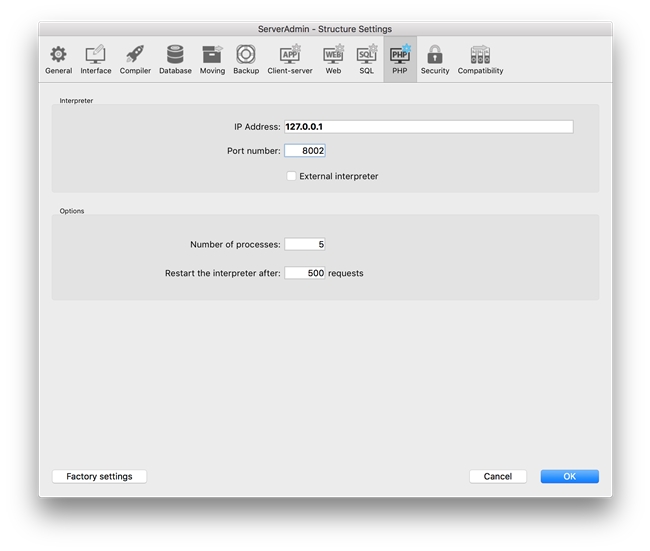 It is therefore recommended that you set a unique port for the PHP Server when using PHP within multiple copies of 4D running on the same machine. The configuration option is in the Database Settings on the PHP tab listed under "Port number":