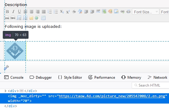 As shown below the image is acutally uploaded to TAOW and the image link is used a a reference for the case: