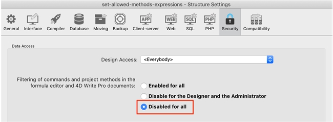 | ARRAY TEXT($methodsArr;1) $methodsArr{1}:="testQuery" // testQuery will simply query and return a full name SET ALLOWED METHODS($methodsArr) |