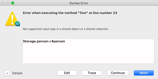 Storage method in V17 enables sharing objects and collections across all processes including preemptive ones. 4D Storage only accept shared objects or collections as its properties. Each modification of Storage and its properties needs to be surrounded by Use...End use.