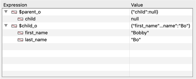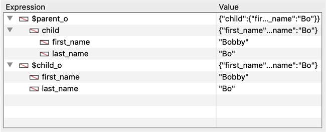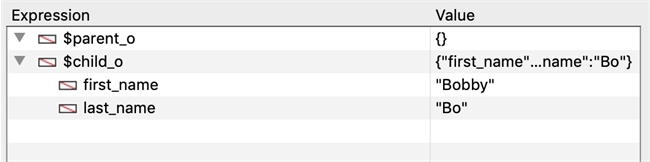 | C_OBJECT($parent_o;$child_o) $child_o:=New object("first_name";"Bobby";"last_name";"Bo") $parent_o:=New object("child";$child_o) // $parent_o.child is a new reference to $child_o |