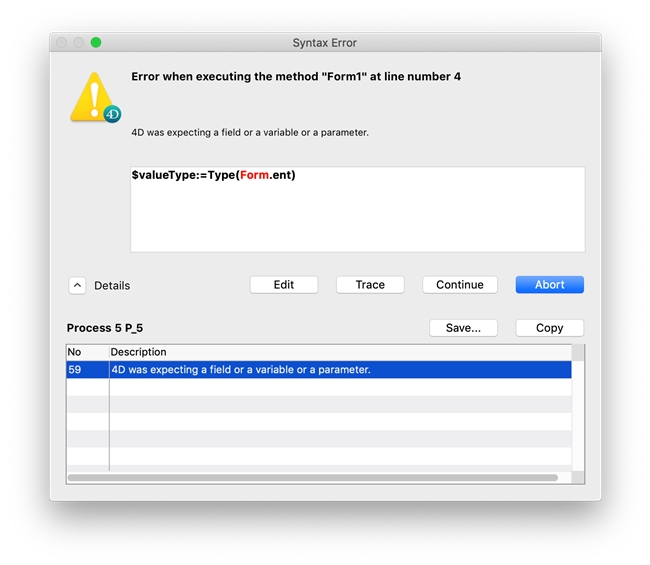 When trying to find the type of a form object, it is easy to assume that the command Value (fieldVar) can be used to return the type. However, it is easy to forget that these form objects cannot be treated as variables and can result in the error below.