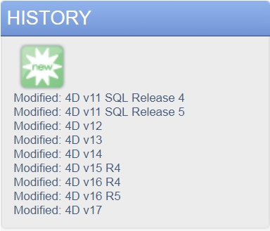 The history may also contain the versions where the command was modified, and also has a very informative "new" icon that indicates that the command was either modified or created in the current version of 4D the document is pertaining to.