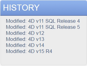 There are many 4D commands that have been introduced and updated in many different versions of 4D. It may be beneficial at times to see when a command was implemented or changed to see if there are new features or if there are new behaviors to look out for when upgrading a database.