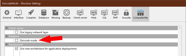 If you would like to permanently switch to Unicode mode then you would need to modify the Database Settings either via the SET DATABASE PARAMETER or via the Compatibility page of the Database Settings: