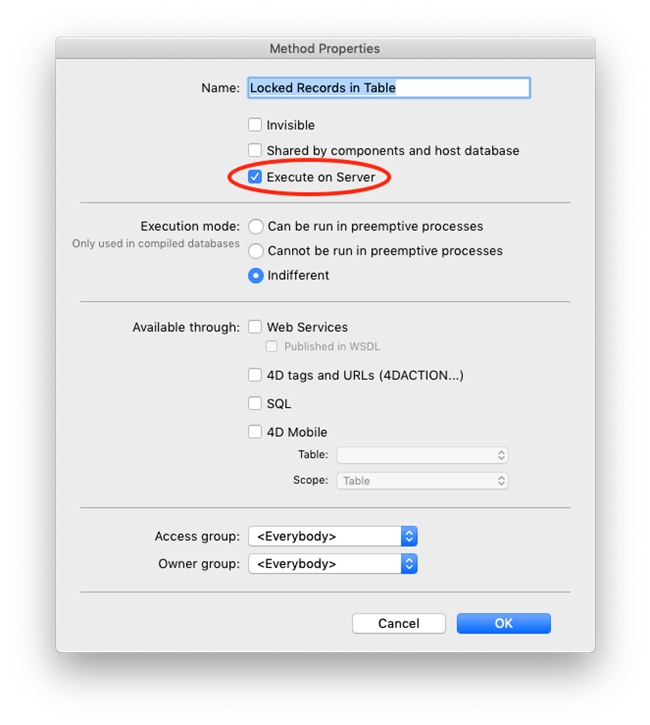 $0:=Get locked records info([Table_Name]) - Click on the information icon in the method editor (Opens the method properties)
