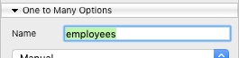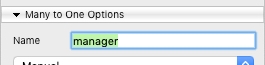 After creating the relation, it is important to give meaningful names to the many-to-one and one-to-many links in the inspector. Simply choose names that make sense in the context. It will be useful for easily calling the relations later in code. In this case, employees have one “manager”, and a manager has many “employees”.