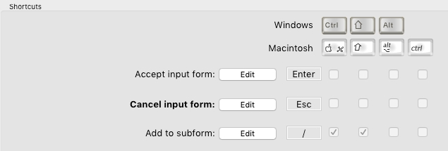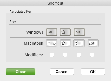 By default, the shortcut is set to the ESC key. You can edit it to allow some other key to close the form, or you can just clear it in the edit shortcut menu to prevent any keys from exiting your form windows.