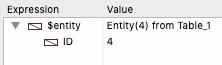 In the debugger, we can see that the entity has been assigned a primary key (ID of 4):