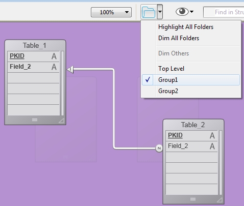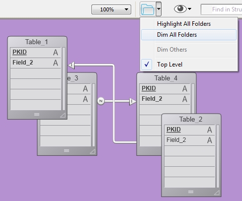 If a database has alot of tables the structure editor can become very cluttered or large. If the tables are grouped and organized into separate folders then the dimming feature can become very useful.