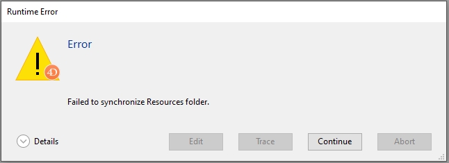 When connecting to 4D Server remotely, the resources folder will attempt to sync upon connection. However, if there is any file that contains special characters (back slash, forward slash, etc.), the syncing operation will be interrupted and none of the files will sync.