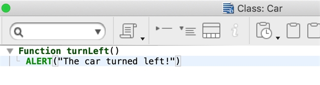 Note that the Classes feature is only available in a project database. After our Car class is created, we can write functions for the car class. Let's write a turnLeft function: