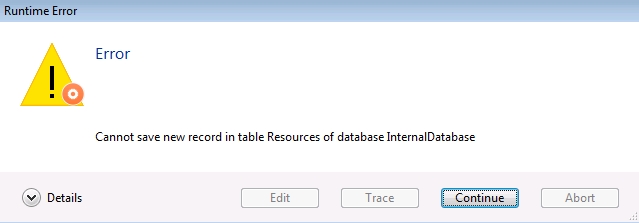 Tech Tip: Cannot save new record in table Resources of database InternalDatabase Error