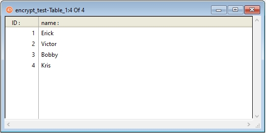 If an external drive is connected, 4D will automatically check the root directory for the correct encryption key and show the unencrypted data as shown below: