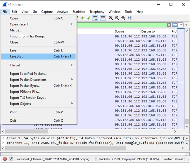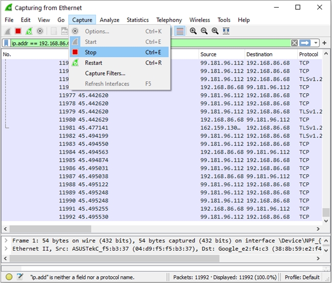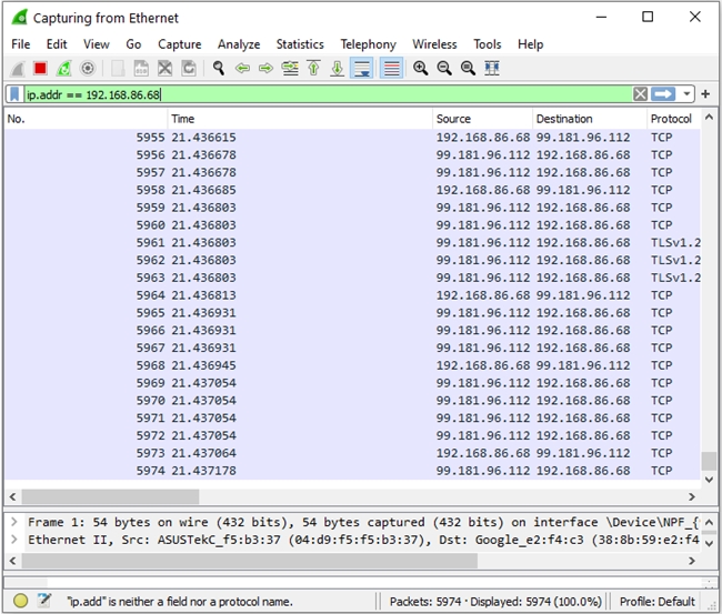 2. Filter the server IP address (E.G. ip.addr == 192.168.86.68)