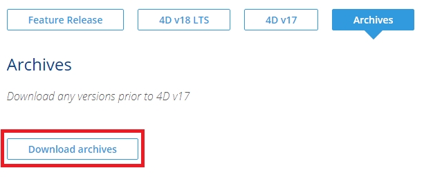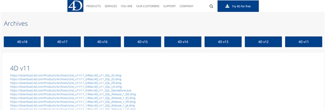 Sometimes there may be a need to use an older version of 4D. While they are no longer supported, these are still available for download.