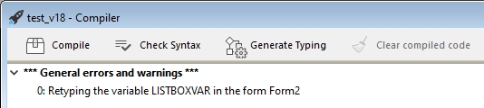 When working with different types of listboxes such as current selection and array-based, make sure both listboxes use their own process variable name to avoid typing conflict. Take for example when both array-based and current selection listboxes on different forms is given the variable listboxVar. 4D will fail to compile due to the different variable types for each listbox.