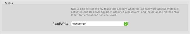 Note that if you have this database method defined in any way (even if it’s blank), the REST access structure settings above will be ignored.