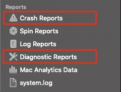 Mac Crash File: Open the Console application and check in the 'Diagnostic Reports' or the 'Crash Reports' tab for .crash files.