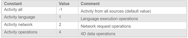 The last and optional parameter is the type of activites to monitor. The following are the possible activities selectors:
