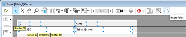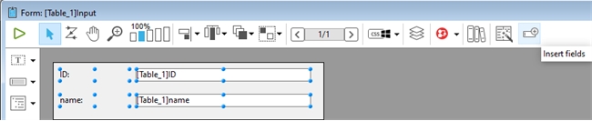 As a replacement for the Form Wizard previously used in binary mode, project mode now offers the option to quickly insert fields into a form which is useful for creating simple detail and list forms without having to manually create each form object separately. Simply create a new form and hit the "Insert fields" icon on the far right of the toolbar.